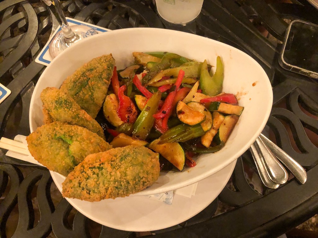 The Kung Pao Avocado at Mar Vista is incredible! It isn’t often that a seafood place has a good plant-based option, but this meal was exploding with flavor. Eating this fried avocado with veggies and rice underneath lights next to the gulf made for a dreamy end to this trip.
