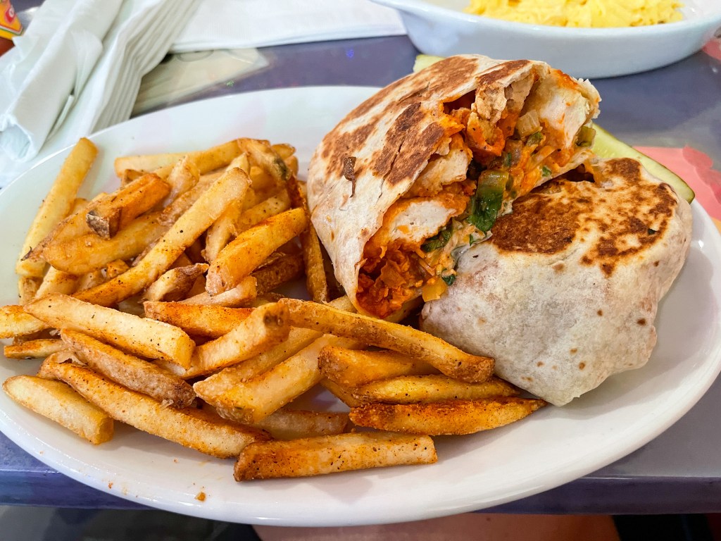 The buffalo tofu wrap is my favorite thing to order for lunch. Both the wrap and fries are perfectly seasoned, and the tofu has a nice kick to it.