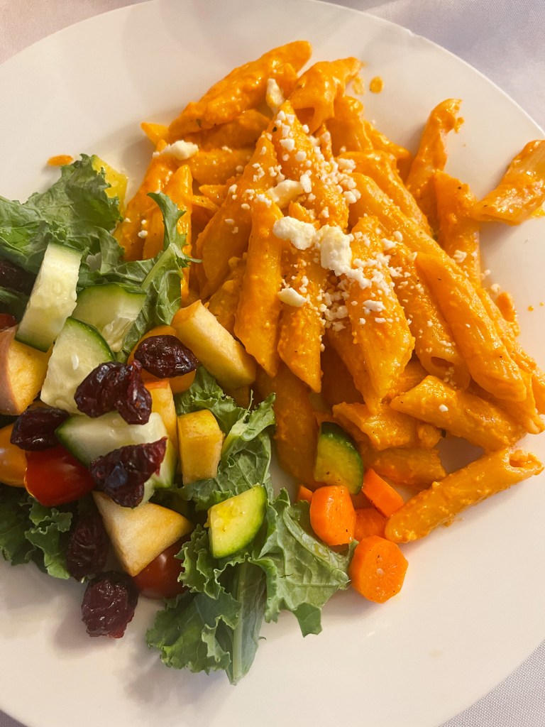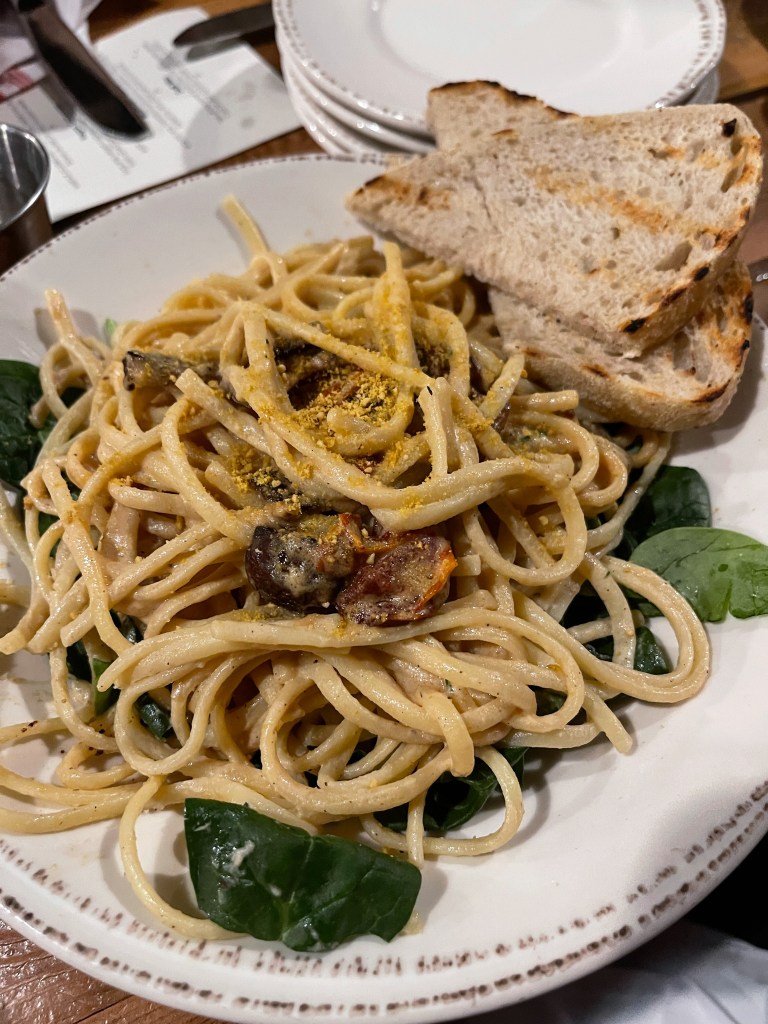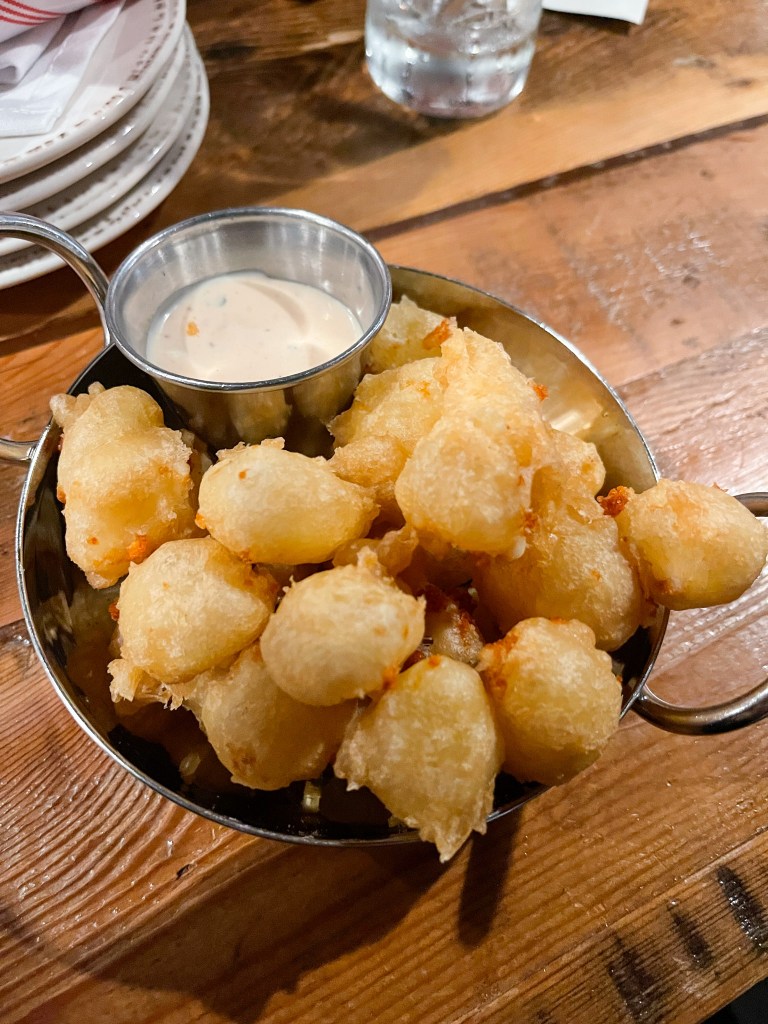 For dinner at The Delft Bistro, I tried the loaded Brussels sprouts, cheese curds, and vegan carbonara. All three were delicious, but I’m still thinking about those cheese curds.